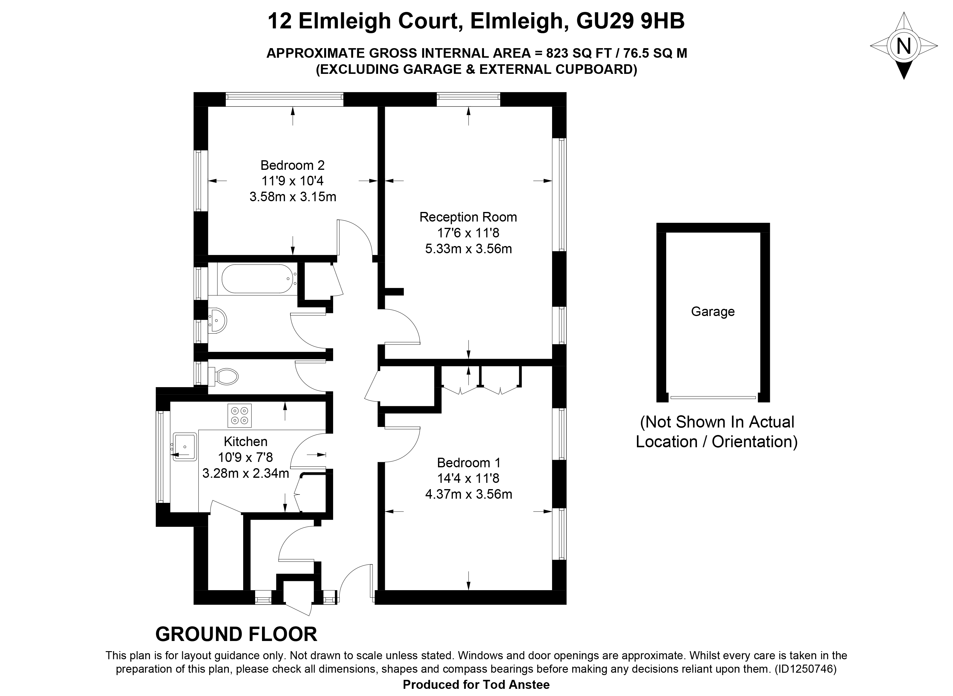 The apartment benefits double glazing throughout and gas central heating. The welcoming hallway leads to a bright and functional kitchen, complete with classic cream units, a free-standing cooker and dishwasher, and a large window with pleasant views. The principal bedroom features built-in storage cupboards, while the second bedroom is positioned adjacent to the family bathroom. A separate WC adds extra convenience. Outside, there are well-maintained gardens along with off-street resident parking and a garage, ideal for additional storage or vehicle parking.