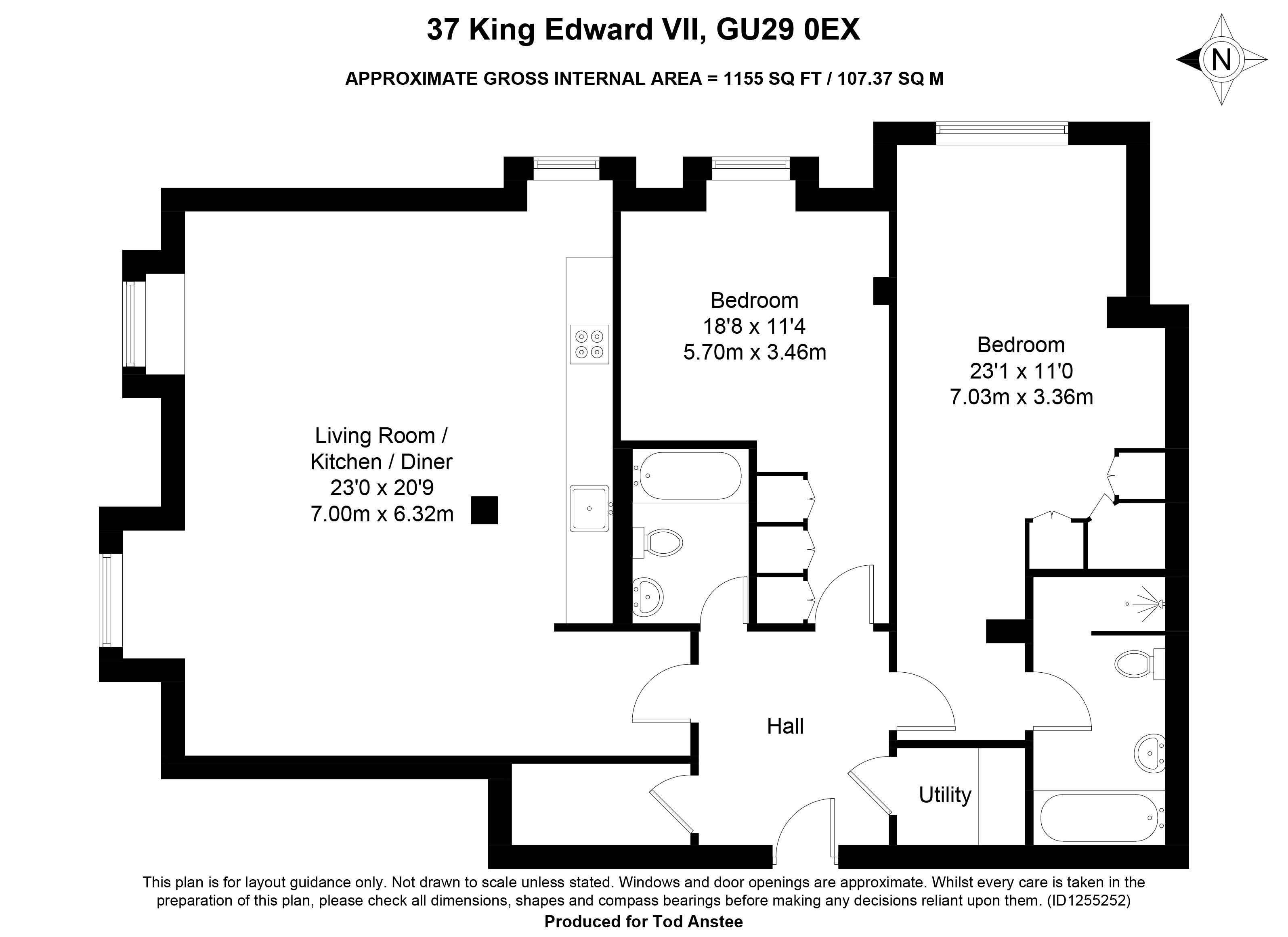 The spacious accommodation includes two well-proportioned double bedrooms, each with built-in wardrobes, and two bathrooms, one of which is en-suite. The open plan kitchen, dining and living area provides an inviting space for everyday living and entertaining.